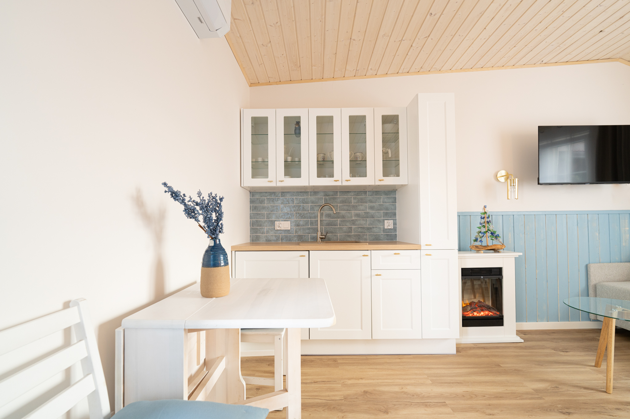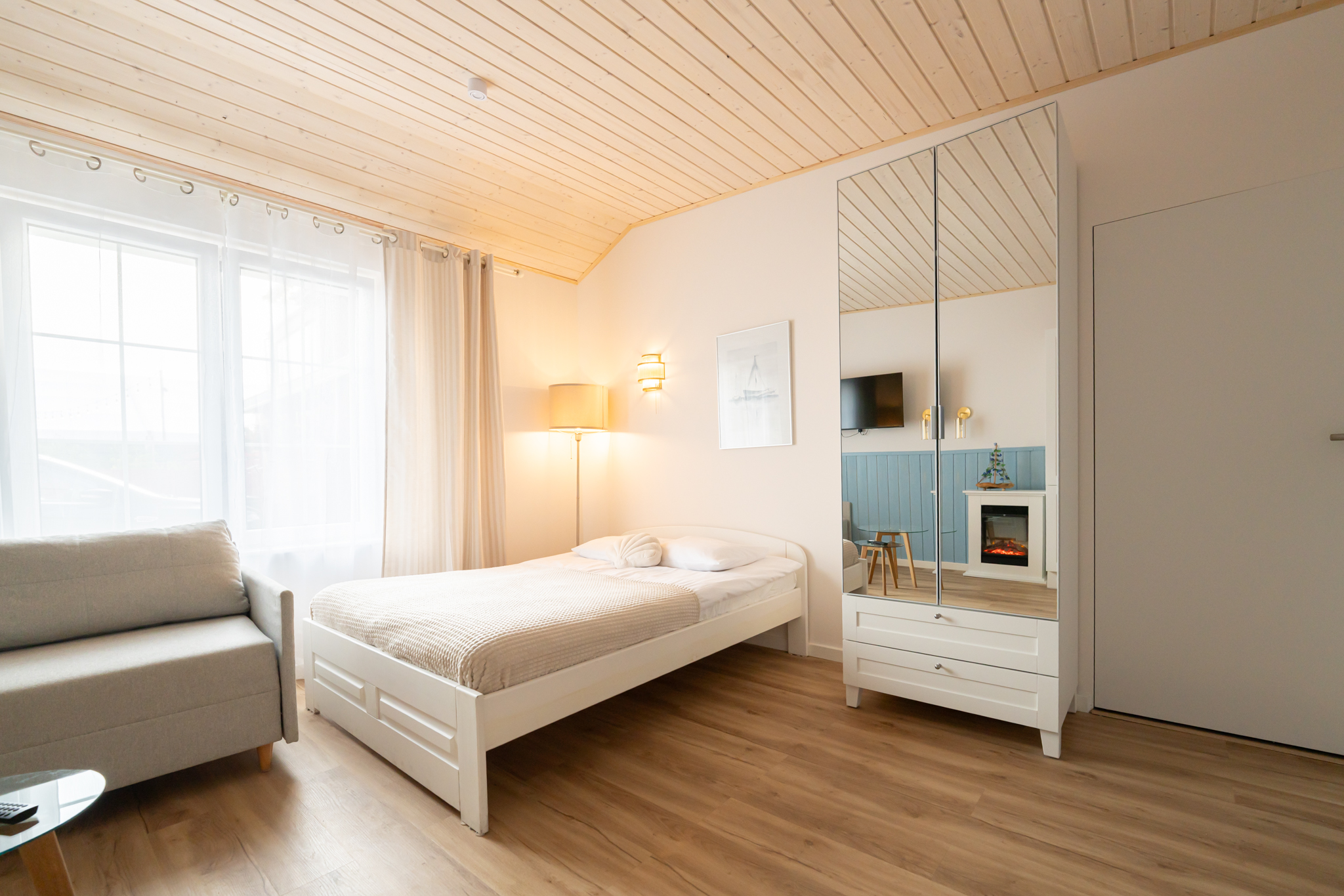 Ten przytulny apartament o powierzchni 19 m² to idealne miejsce dla maksymalnie czterech osób. Położony na parterze, tuż przy promenadzie, zapewnia komfortowy pobyt i bliskość wszystkich atrakcji Sarbinowa. Wnętrze jest urządzone z myślą o wygodzie – znajdziesz tu nowe, komfortowe łóżko małżeńskie (140 cm) oraz rozkładaną sofę o tej samej szerokości, co sprawia, że apartament doskonale sprawdzi się zarówno dla rodzin, jak i grupy przyjaciół.