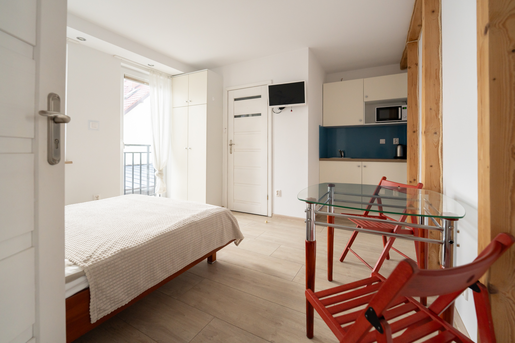 Pokój o powierzchni 17 m² to wygodne i funkcjonalne miejsce przeznaczone dla dwóch osób. Dzięki przestronnej aranżacji i spokojnemu widokowi na wewnętrzny dziedziniec, idealnie sprawdzi się jako baza wypoczynkowa w samym sercu Sarbinowa.